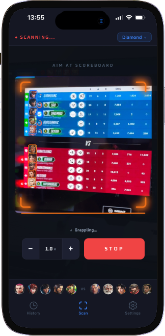 Open OverHelper and aim your camera at the in-game scoreboard.